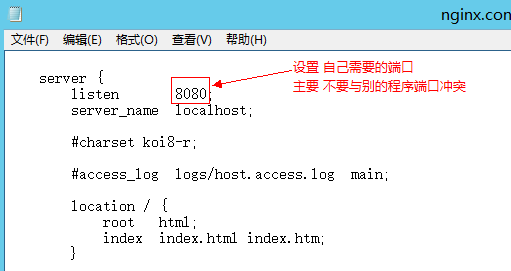 在 nginx 安裝路徑下 打開:..\ conf\nginx.conf? (需要到其路徑下去找)