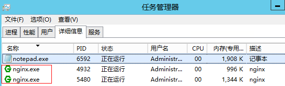 那么怎么知道自己的nginx是否啟動成功:打開你的管理器,如在進(jìn)程中看到兩個nginx說明啟動成功