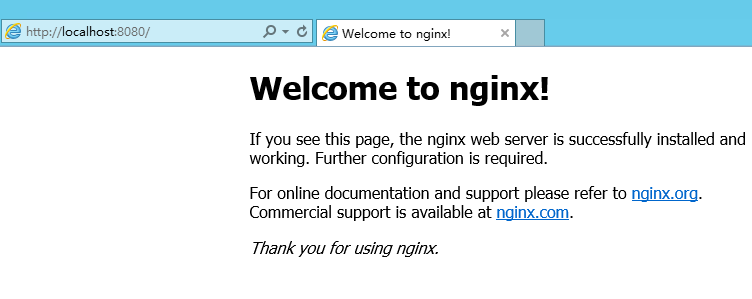 開瀏覽器,輸入地址:http://localhost:8080 (因?yàn)槲覀兦懊媾渲昧?080端口),訪問頁面,出現(xiàn)如下頁面表示訪問成功。